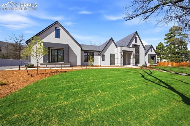 A Rare Opportunity in the Broadmoor Flats. Experience the perfect blend of timeless Tudor elegance and fresh contemporary design in this brand-new 4-bedroom, 4-bath, 3-car, 5,865 sq. ft. residence, crafted by Colorado Springs’ premier builder, Comito Design | Build. With over 40 years of expertise, Comito is known for anticipating every detail and delivering unmatched craftsmanship. An inviting open floor plan flows from the light-filled great room to a chef’s kitchen featuring premium appliances, custom cabinetry, and an oversized center island—ideal for both everyday living and grand entertaining. Expansive 10’ multi-slide doors in the dining and great room lead to a generous covered patio, creating effortless indoor–outdoor living. The serene main-level primary suite offers refined comfort, while luxury finishes throughout include wide-plank hardwood floors, designer fixtures, curated custom tilework, and exceptional millwork. Built as a high-performance home, it combines beauty with efficiency—advanced insulation, premium windows, and high-efficiency systems ensure comfort, lower utility costs, and minimal maintenance. This is more than a home—it’s a statement of style and a rare chance to enjoy historic neighborhood charm with all the advantages of today’s best building standards.